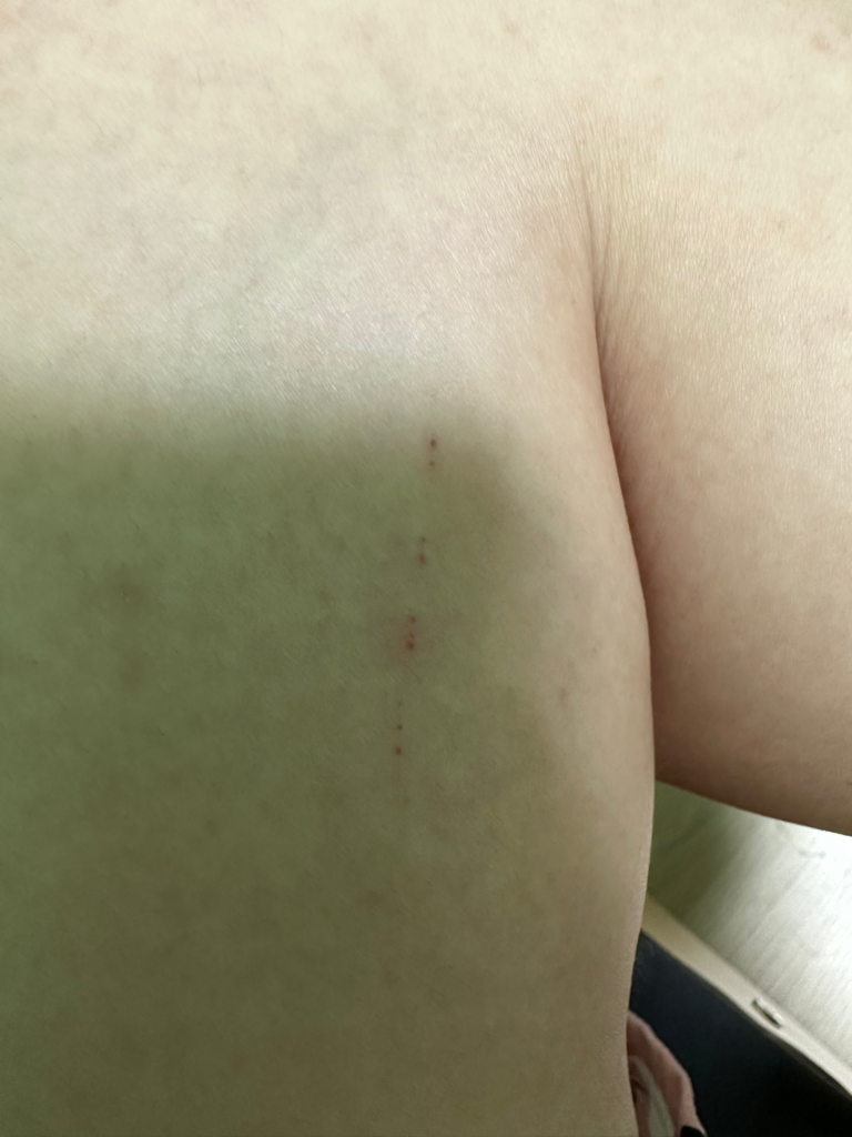 어디 긁히지는 않았는데 지금보니 대칭적으로 이렇게 일렬로 뭐가 생겼어요