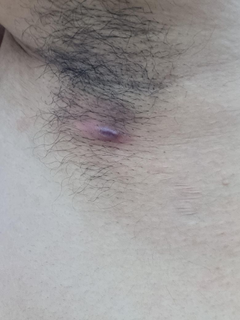 겨드랑이 종기처럼 보입니다. 쉽게 설명하면 큰 모낭염 정도로 이해하시면 됩니다. 종기는 대개 세균 감염으로 발생하며, 통증과 붓기를 동반할 수 있습니다. 치료 방법으로는 따뜻한 찜질을 통해 통증을 완화하고, 항생제 연고를 사용해 세균 감염을 억제할 수 있습니다. 종기가 크거나 고름이 차 있을 경우 의사가 종기를 절개하여 고름을 배출하고 항생제를 처방할 수 있습니다. 위생 관리도 중요하며, 자극적인 제품을 피하고 깨끗한 상태를 유지하는 것이 도움이 됩니다. 정확한 진단과 치료를 위해선 피부과 진료가 필요합니다. 감사합니다