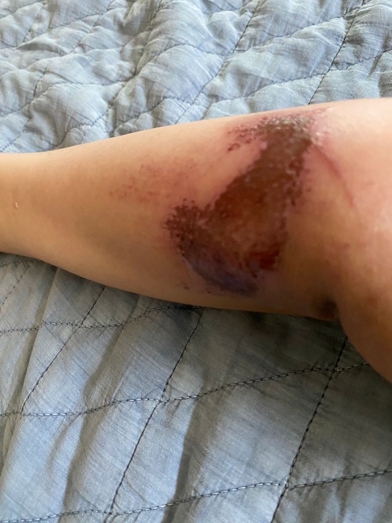 자전거 타다 넘어져 무릎과 팔꿈치에 찰과상