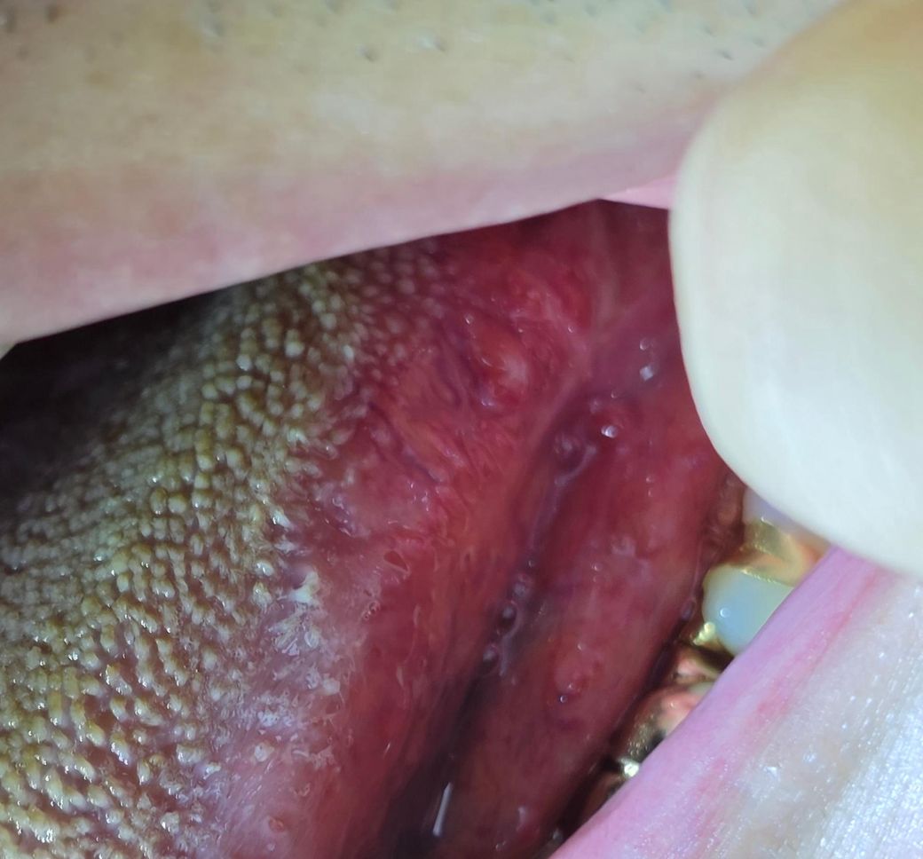 사진에서 보이는 혀 옆부분의 세로로 접힌 듯한 구조와 도톰한 조직은 대부분 엽상유두 또는 그 주변의 정상 유두 조직입니다. 이 부위는 사람마다 모양과 크기 차이가 크고, 한쪽이 더 도드라져 보이는 경우도 흔합니다. 혀를 특정 각도로 당기거나 입안을 벌렸을 때 평소보다 더 튀어나온 것처럼 보이기도 합니다.