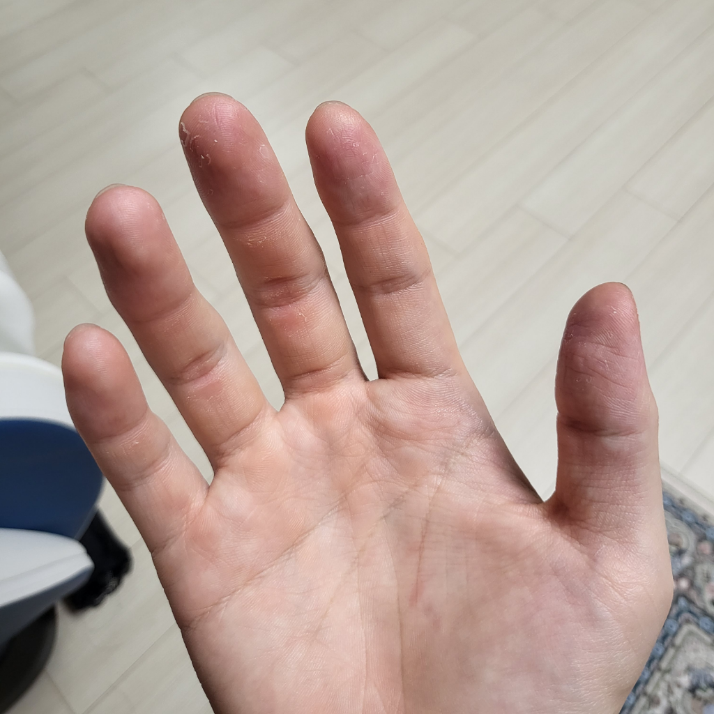 손에 습진이 생긴 겁니다. 수술보다는 아르바이트를 해서 생겼을 가능성이 더 높습니다. 손에 땀이 많이 나면 생길 수 있거든요. 일단 잘 말려주시고 이후에는 보습제도 발라보시기 바랍니다.