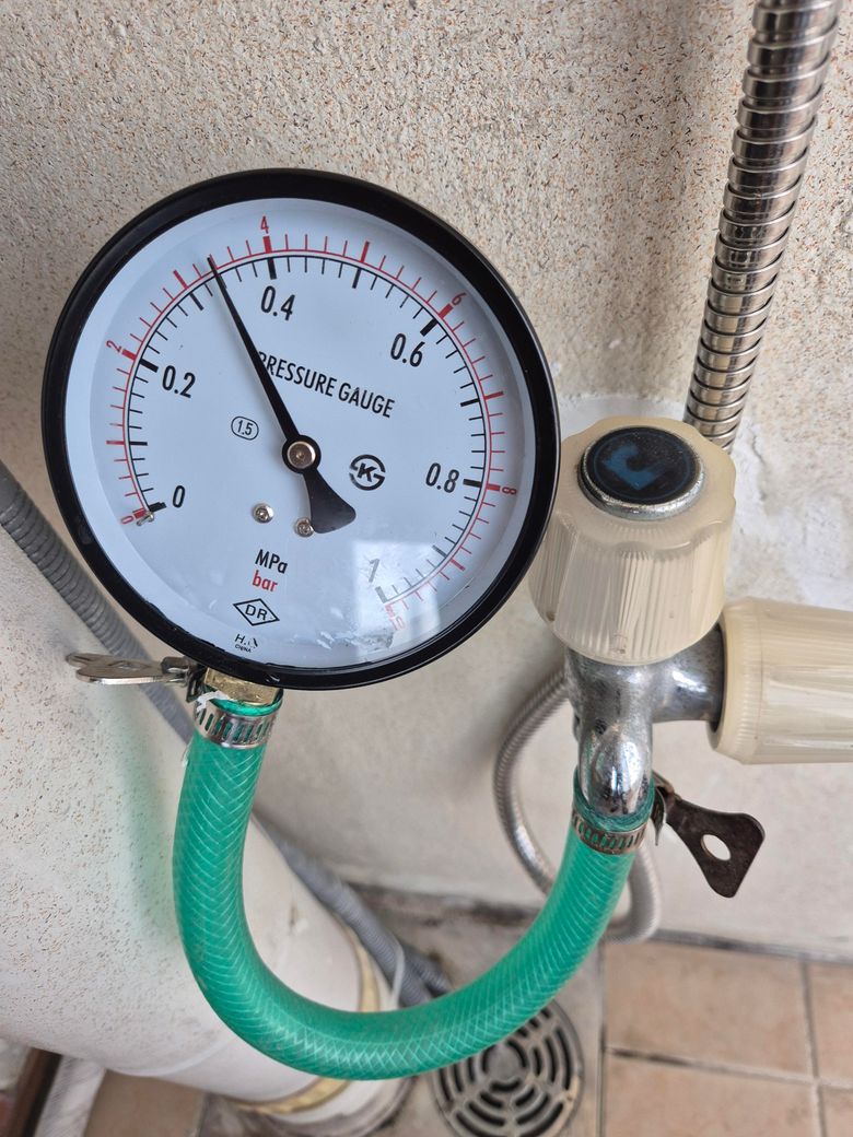 점검 결과 수전 모두 잠군 상태에서 수압 3.2bar(0.32MPa) 입니다.