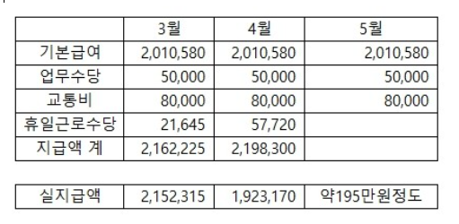 5월 급여가 아직 미정이라 저렇게 적어 놓았습니다.