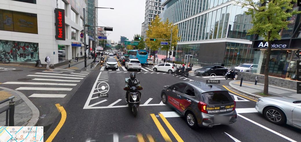 해당도로 오른쪽 1차선에서 신호위반 좌회전 오토바이와