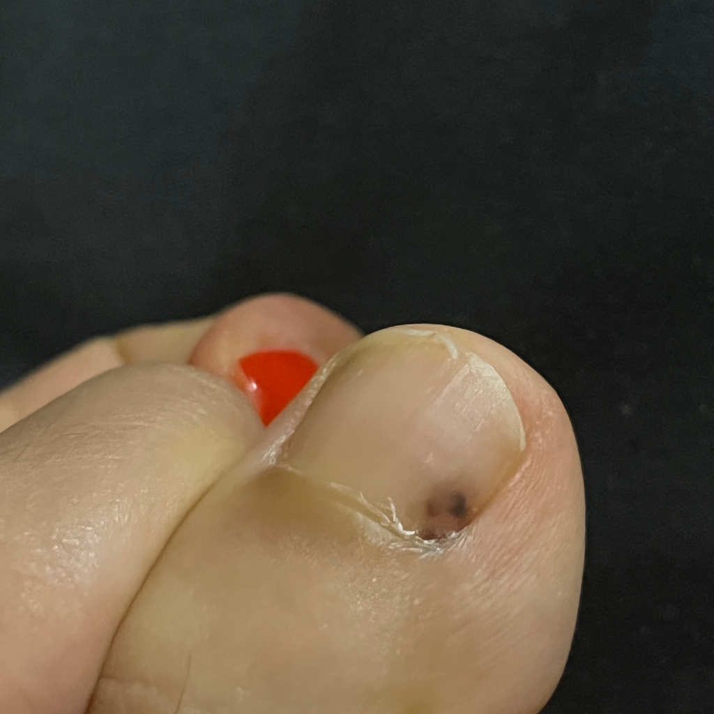 지금봤을때는 타박상으로 인한 발톱밑 출혈으로 보입니다.