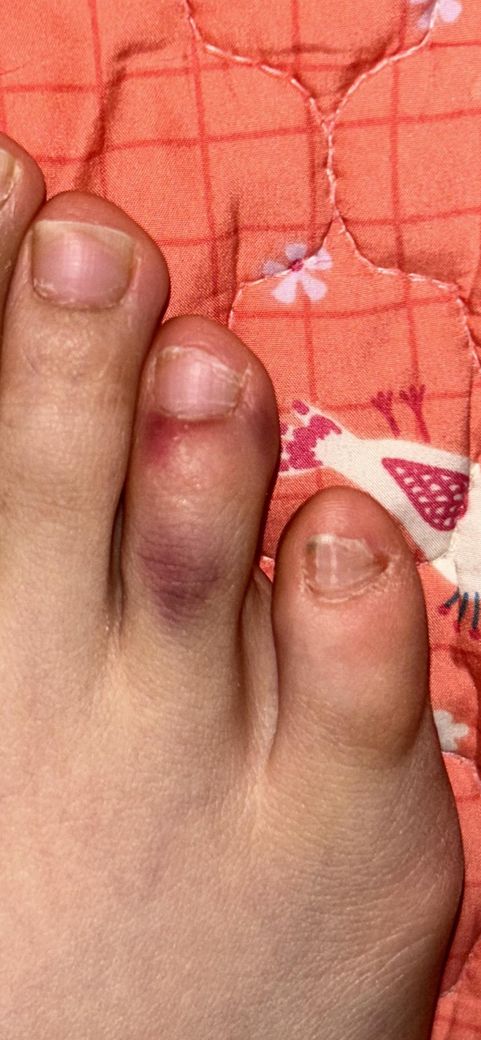 급하게 뛰쳐나가다 방 문 모서리쪽에 발가락을 세게 부딪혔는데 피멍이 들었어요... 발톱이랑 제일 근접해있는 부분을 세게 부딪힌건지 그 부위만 눌렀을때 좀 아픈데 .. 앵간하면 병원을 안가고싶은데 부딪힌 부위 말고 더 아랫부분과 옆면까지 멍이 내려온걸보니까 좀 심각해보여서 걱정이에요