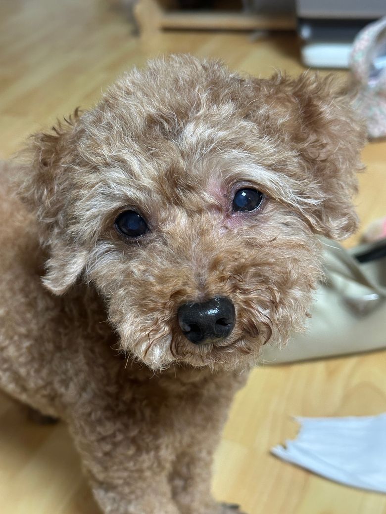 산책하고 방금 목욕하고 나왔는데 눈이 빨갛고 뭐가 났어요.. 만지지도 못하게 하고.. 점점 붓는거 같아요..
