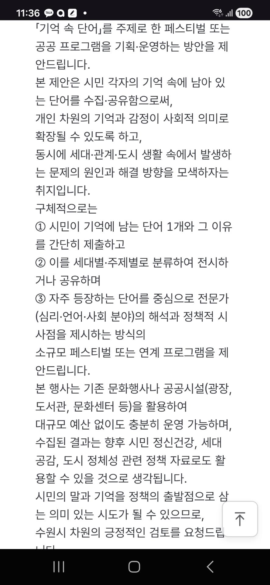 시민의 기억 속 단어를 수집 전시 하는 참여형 프로그램은 지자체 문화행사로 기획 가능하며, 세대 공감과 정신건강 정책 자료로 활용 여지가 있습니다.