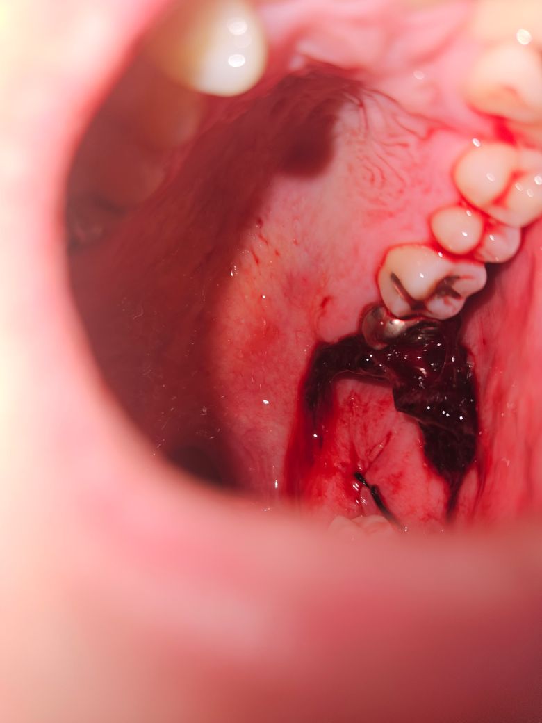 사랑니 발치 다음날 자고 일어나니 혈병이 커졌습니다.
