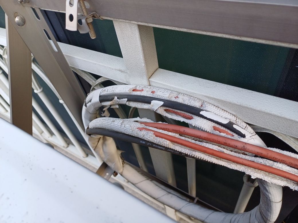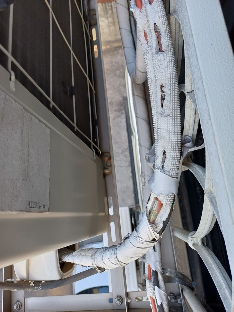 전선은 아니고 실내기와 연결되는 구리배관 마감재가 외부 노출되서 삭아서 없어진거 같네요. 마감재만 다시 씌위면 될듯합니다.