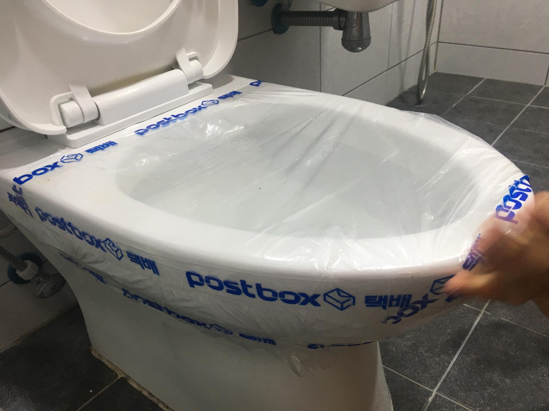 그리고 공기가 못 나올정도로 비닐과 변기에 돌돌 붙히세요