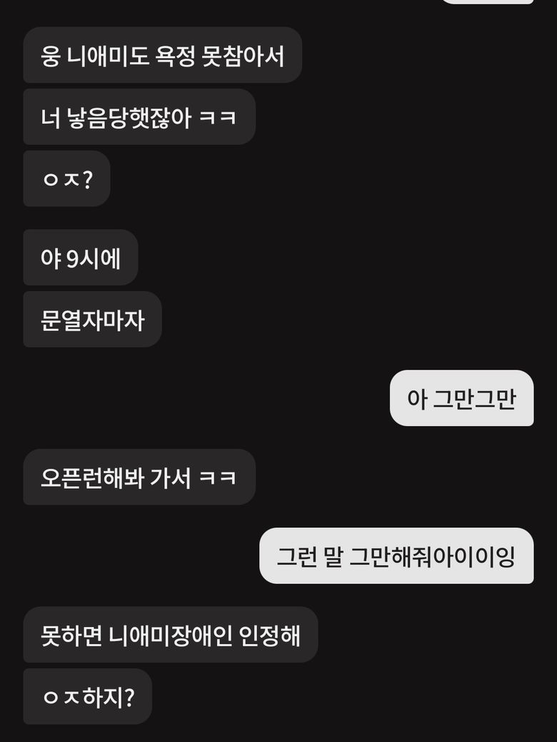 이렇게 욕설을 했는데 통매음 성립될까요? 1대1 채팅입니다