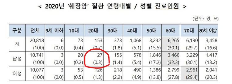 위의 자료를 보시면 환자분 연령대에서는 가능성이 많이 낮은 것을 확인하실 수 있습니다.