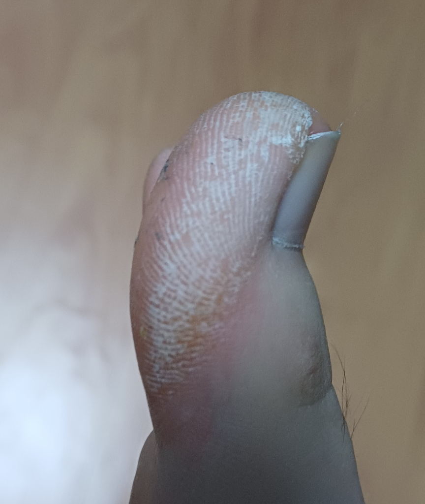 무좀에 의해서도 생길 수 있는 소견이며 습진에 의해서도 생길 수 있는 소견으로 해당 사진 한 장만 놓고 구체적으로 감별 진단이 가능하지 않습니다. 피부과적으로 진료 및 검사를 통한 감별 진단을 받으시길 권고드립니다.