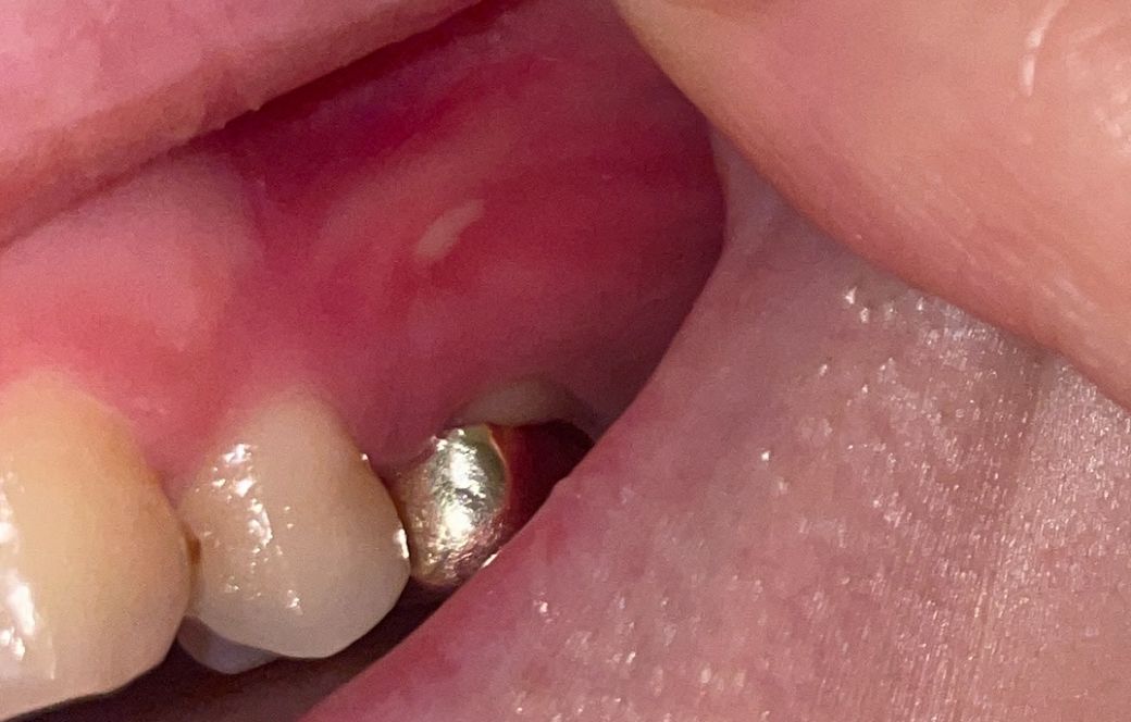 잇몸쪽은 구내염 때문에 흰색으로 궤양이 생긴 것으로 보이는데요. 오라메디나 알보칠을 발라주시면되고 그렇지 않더라도 수일내로 괜찮아 질 가능성이 높습니다.