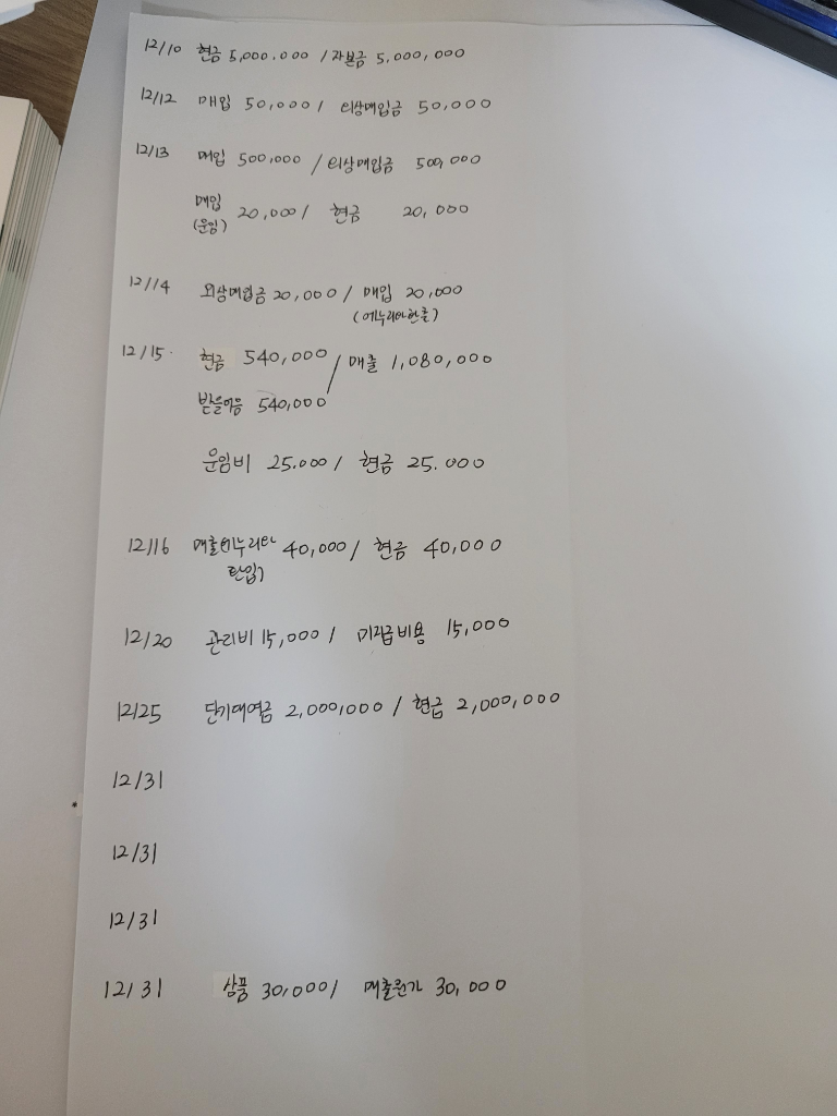 4) (차변) 상품 30,000원 (대변)매입 30,000원
