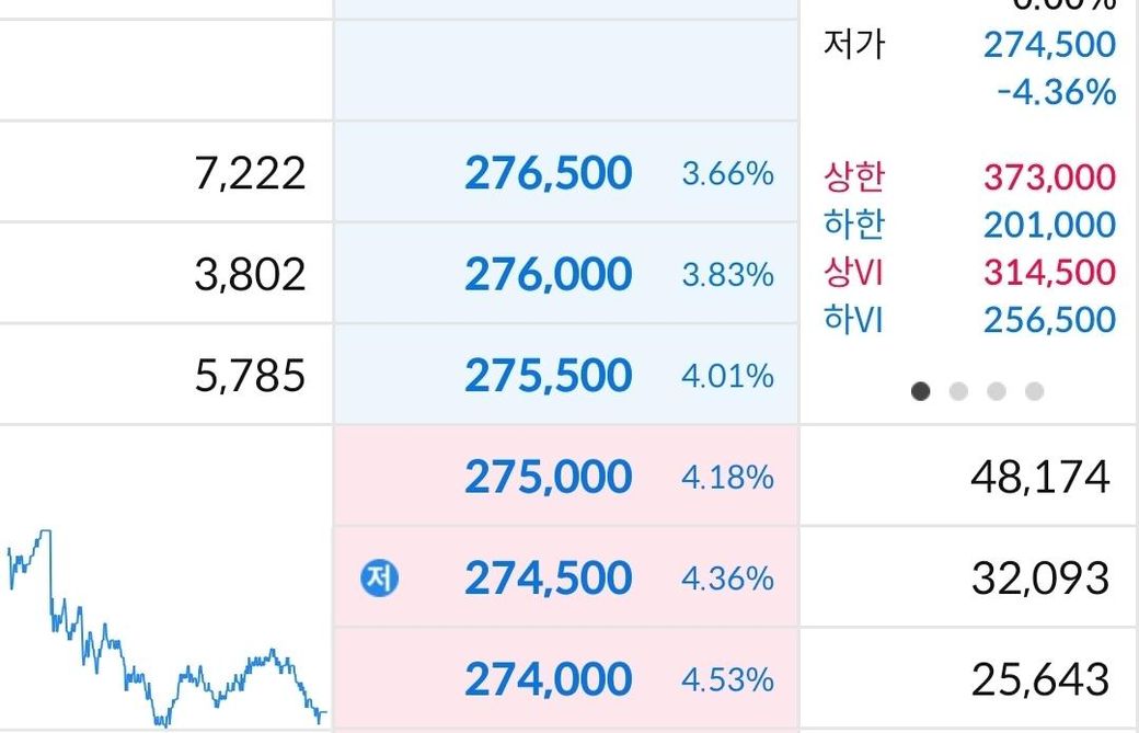 275,500원에 매수물량이 5,785주의 대기물량이 있다는 것입니다.