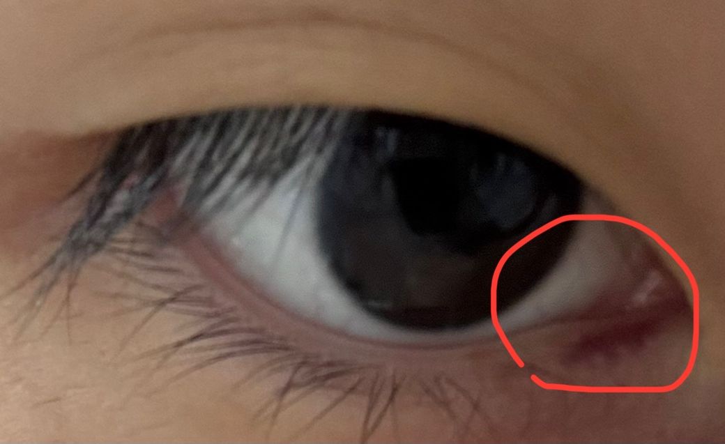 사진에 동그라미 친 부분이 원래 없었는데 오늘 보니까 빨갛더라구요 저게 빨간점인가요?? 제가 알러지성 결막염이 있어서 간지러울 때 긁어서 생겼나 했는데 결막염이랑은 상관없고 빨간점이라고 하길래요