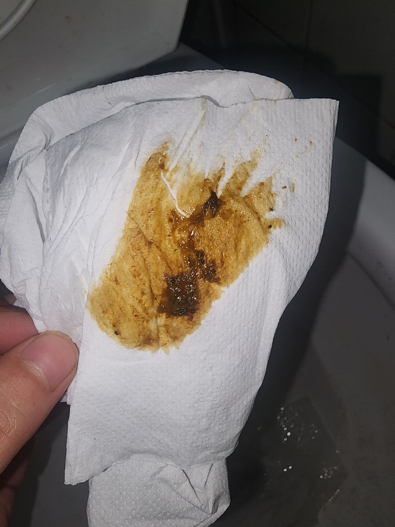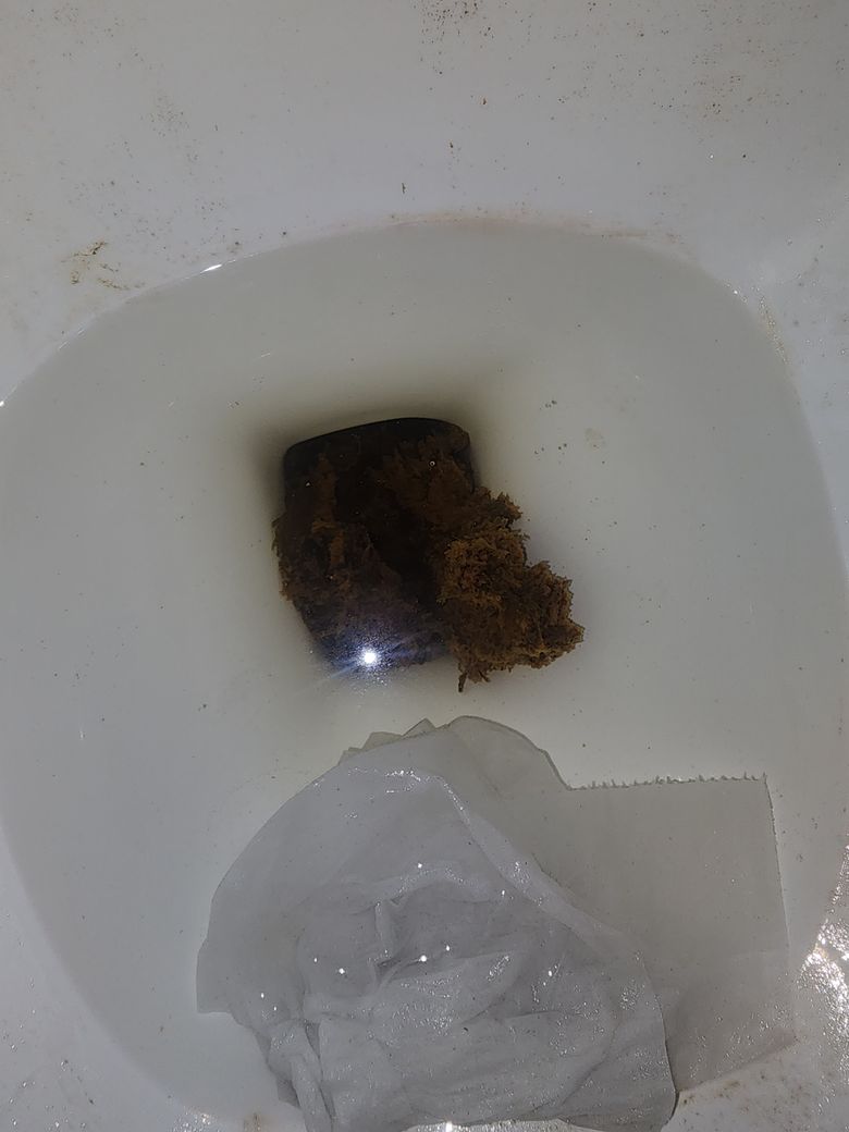 검은건 깻잎이 소화가 안되어 그대로 나오는것으로 보이구요 지금까지 혈변이나 흑변으로 보이는 변은 보지 않았습니다 매번 저런식으로 흩어지기 직전에 조금 뭉치는 변을 보고있습니다 나물이나 채소를 먹으면 소화가 덜되어 형체가 그대로 나옵니다.