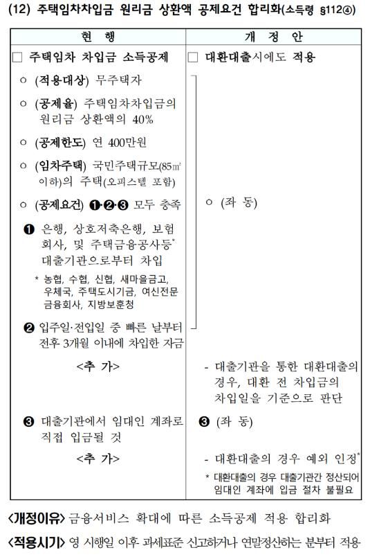 위 개정내용은 소득세법시행령 후속 개정안으로 아직 공포 시행되지 않았습니다. 다만 조만간 공포 시행될 예정이므로 특별한 사정이 없는한 2024년 귀속 연말정산분 부터 대환대출도 적용이 가능할 것으로 판단됩니다.