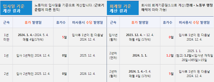 1년차 미만 근무자 연차휴가 계산 이게 맞나요?