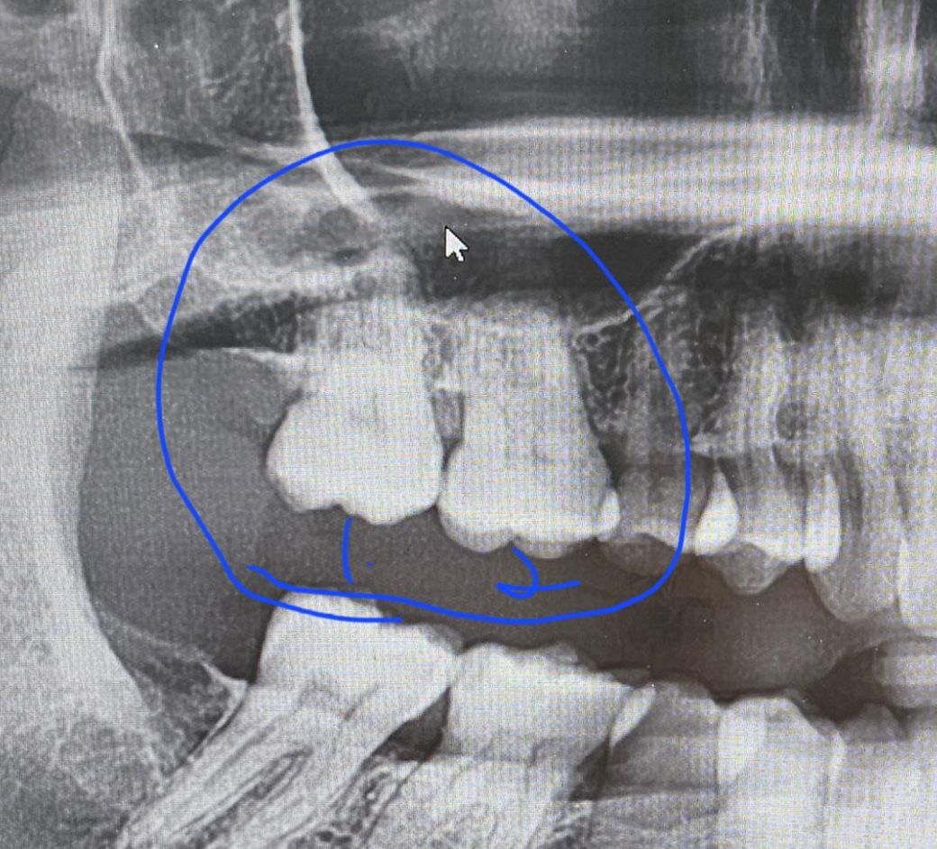 오른쪽 윗부분 제일안쪽 어금니와 옆 어금니가 만나는 곳이 충치가 의심된다고 하셨습니다.