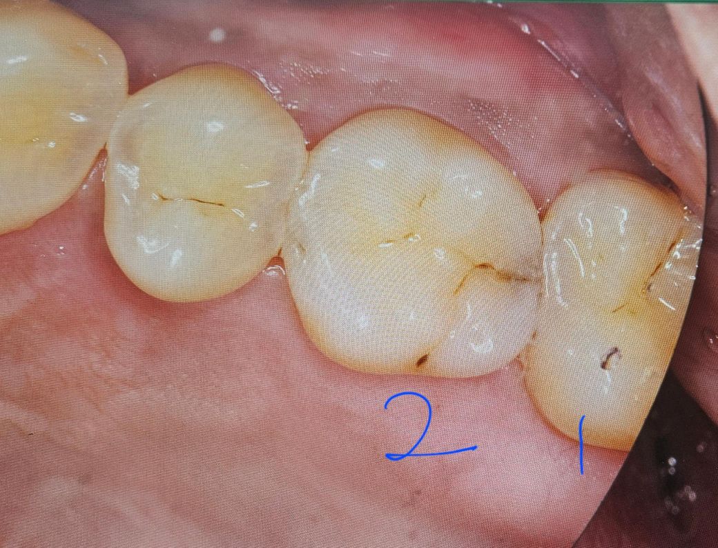 엑스레이와 사진찍어 보여 주시면서 사진상 1번과 2번이 만나는 부분에 충치가 있다고 하셨습니다.
