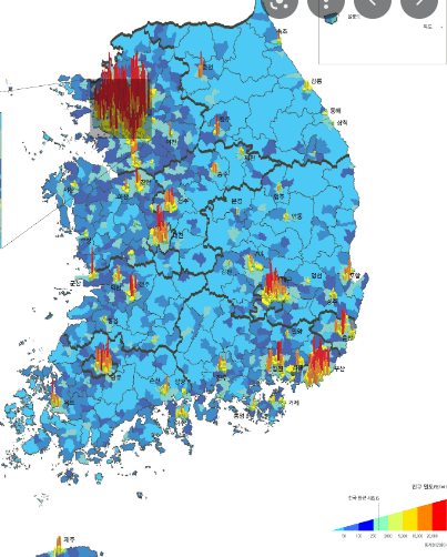 인구 밀도 입니다 인구 1인당 한명씩만 사도 서울이 당첨될 확율이 높겠죠 ㅋㅋ