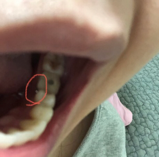 저 부분은 보철물을 다시 빼기 쉽게 하기 위해서 만들어 놓은 고리입니다. 불편하시면 치과에 가셔서 제거를 해달라고 하시면됩니다.