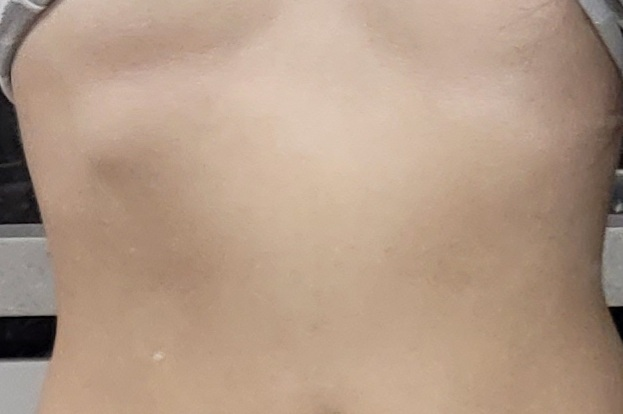 좌, 우가 비대칭적이며 튀어나온 부위의 통증도 유발되는 상황이므로 진료를 받아보시는 것이 좋겠습니다. 흉부외과가 가장 적합할 것이라 보입니다.