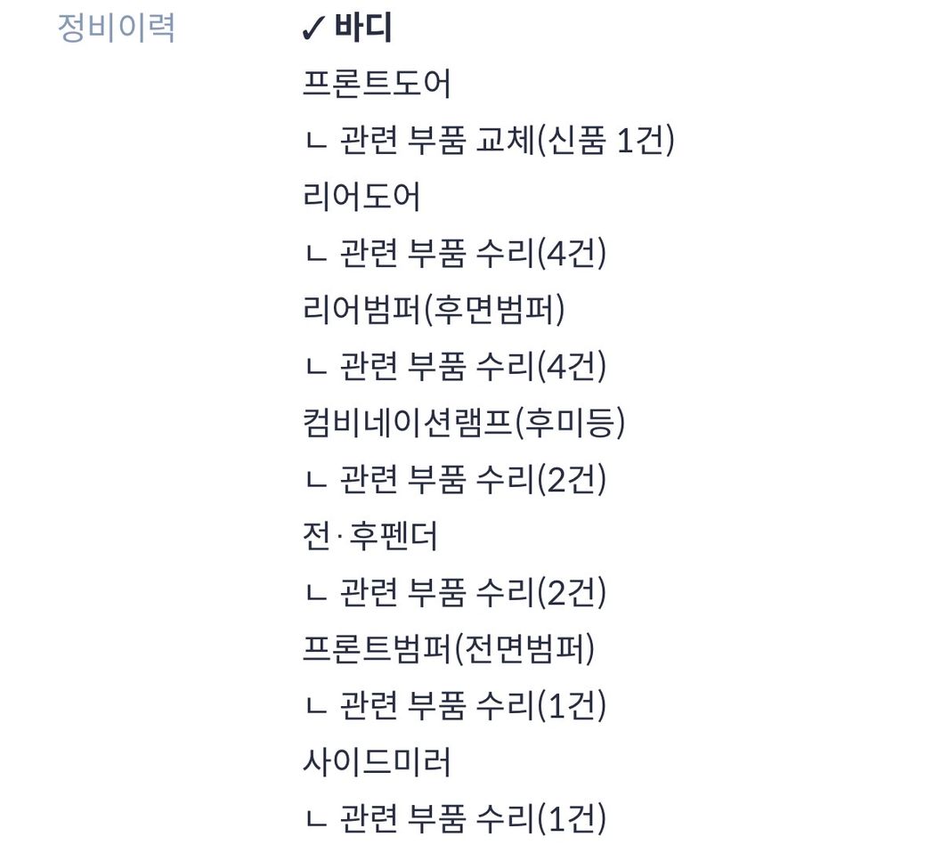 구매를 하기전에 정비이력을 확인해보니 이런 사항들이 있는데