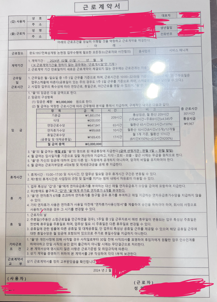 근로계역서, 급여명세서 위반사항 전부 알려주세요