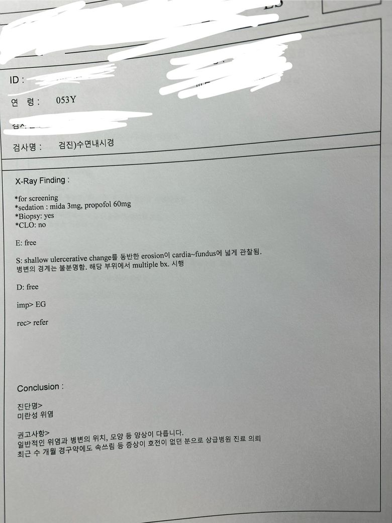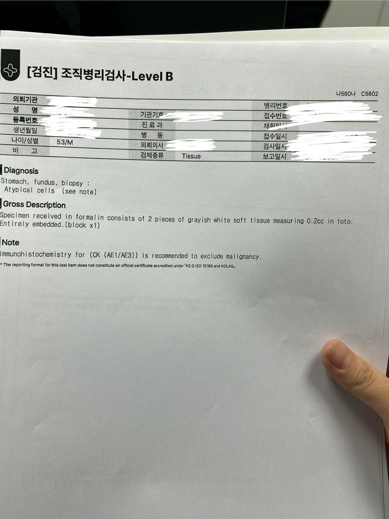위내시경 조직검사 결과지 해석 좀 해주세요