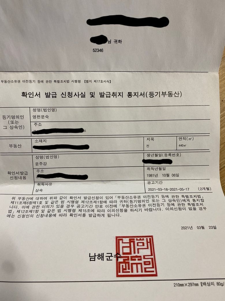 이번에 증조할아버지 아들중 한분인 윤주강이 조치법에 상속을받으실려고하는데 저희할아버지는(큰아들) 돌아가시고 안계셔서 저희아버지께 이의신청서류가날아왔더라고요