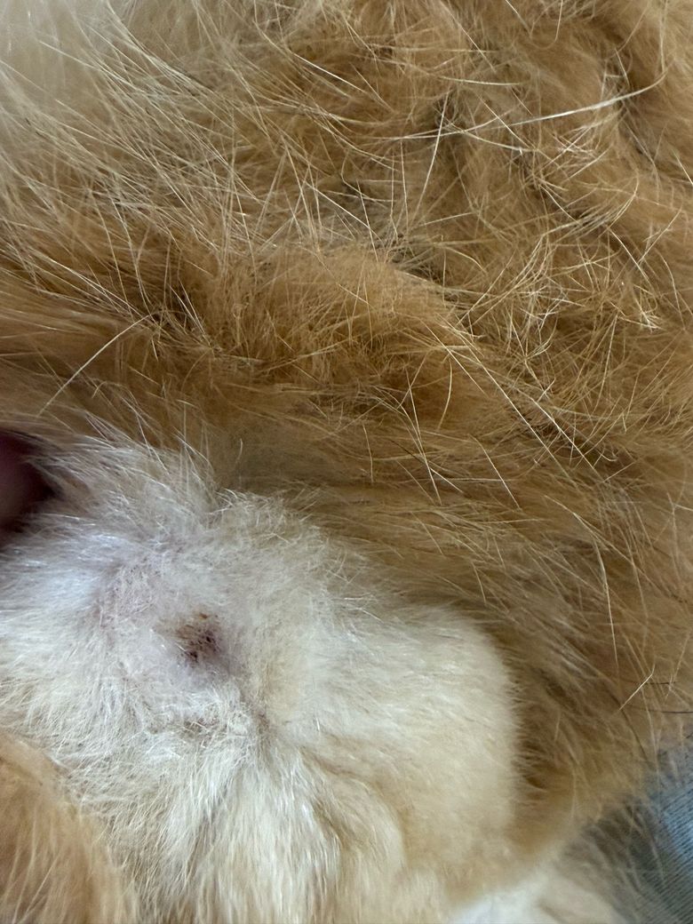 반면 딱지 주위에 붉은 발적, 부종, 통증 반응, 반복적인 그루밍, 소변 시 불편감이 동반된다면 포피염, 요도염, 세균성 피부염 등의 가능성을 고려해야 합니다. 특히 포피 내부에 소변이 고이거나 요도 입구에 세균이 증식하면 진득한 분비물이 갈색으로 변하며 냄새가 나는 형태로 나타날 수 있습니다. 장모묘의 경우 털에 묻은 소변이 마르며 착색된 경우도 많으므로, 털 정리와 청결 유지가 중요합니다.