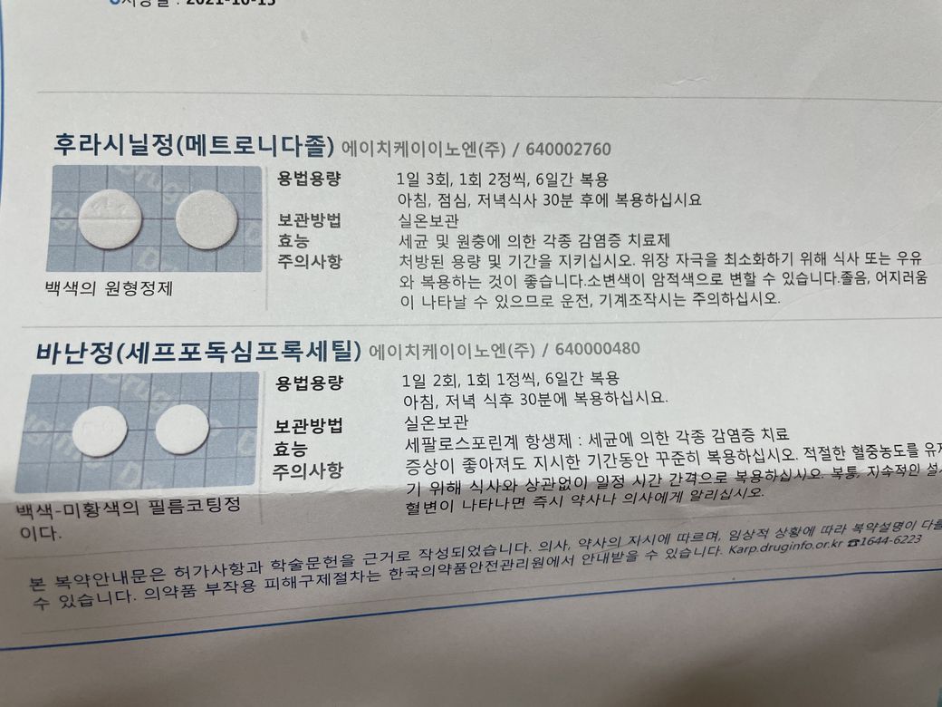 질문하신 내용에 대하여 아래와 같이 답변 드립니다.현재 복용하시는 메트로니다졸과 세프포독심프록세틸은 항원충제, 항생제이기 때문에