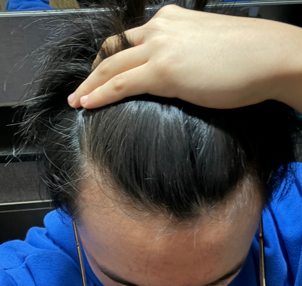 모발이 옆머리나 뒷머리에 비해 가늘어지는지를 확인해야 하는데, 직접 확인해보는 방법으로는 머리카락을 각 부위에서 뽑아 비교해보는 것이 있습니다. 사춘기에는 호르몬 분비가 왕성해지며 초기 탈모를 경험하는 경우가 종종 있는데, 보통은 성인 이후 경구약을 사용하므로 걱정스러우시면 가까운 피부과에서 진료받아보시기 바랍니다.