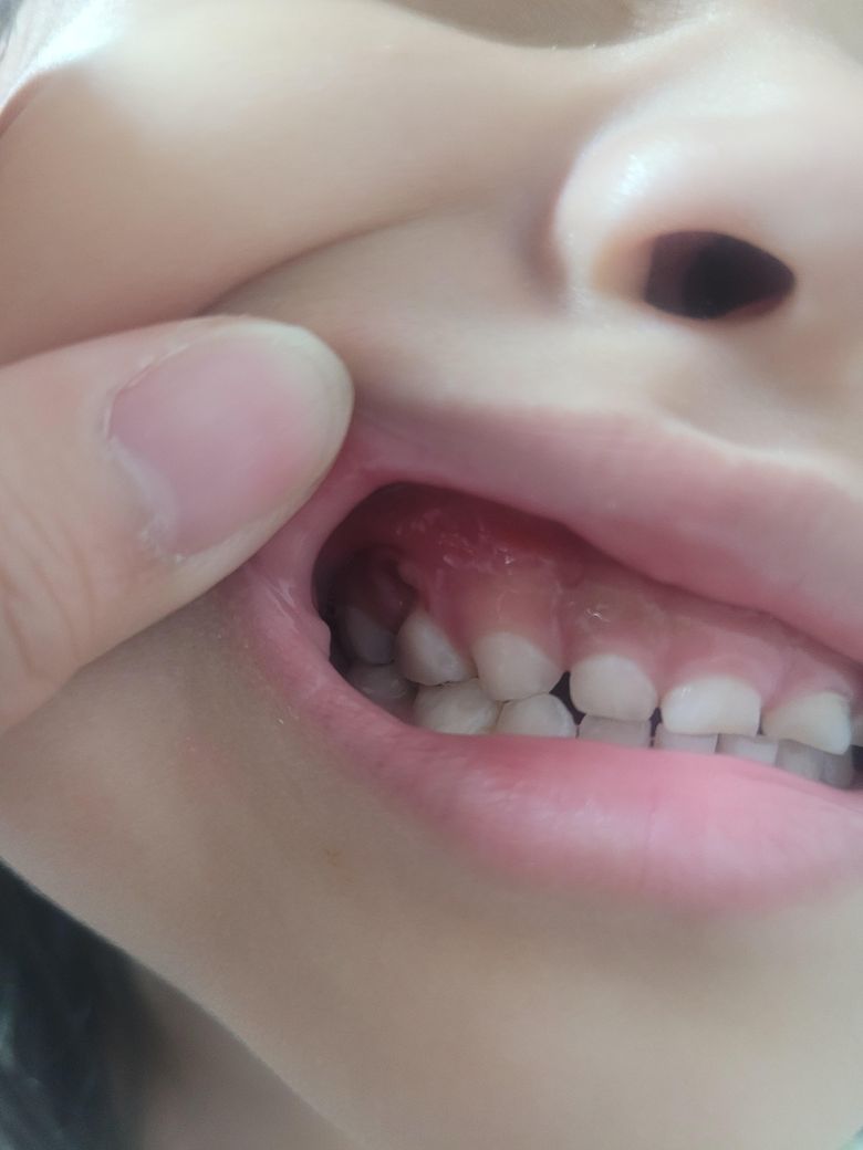 아이 잇몸이 현재 붉고 붓기가 있어 보입니다. 우선은 아이 잇몸통증에 사용가능한 구내염연고를 사용을 하고, 빠른시일내에 치과에 방문하여 진료를 받고 염증치료를 받길 권합니다.