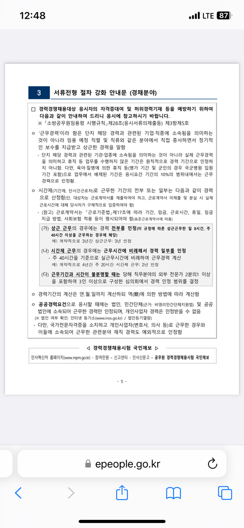 소방 : 일8시간, 주40시간 이상 = ex) 6개월 근무시 6개월 인정