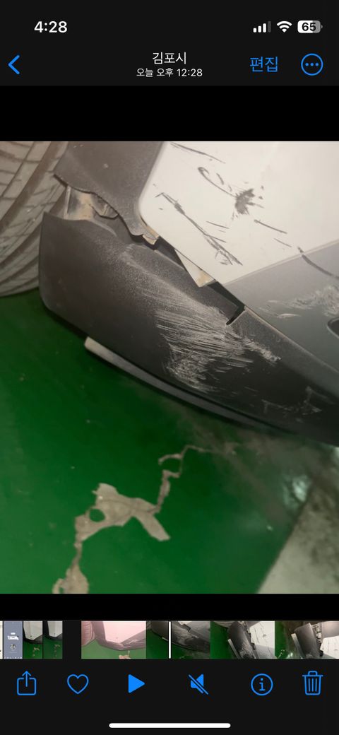 보험으로 자차수리를 할까 알아보니 블루핸즈 공업사에서 60만원정도 견적을 내더라구요 위에 흰색쪽은 도색? 같이 하고 밑에 너덜너덜한 곳은 갈아버린다고