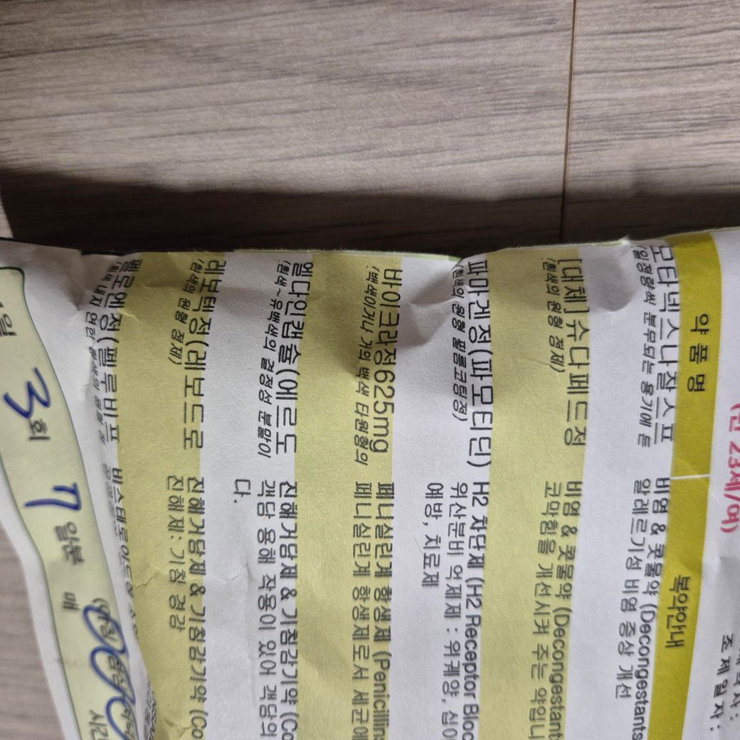 현재 축농증으로 다음의 약을 복용하고있슥니다