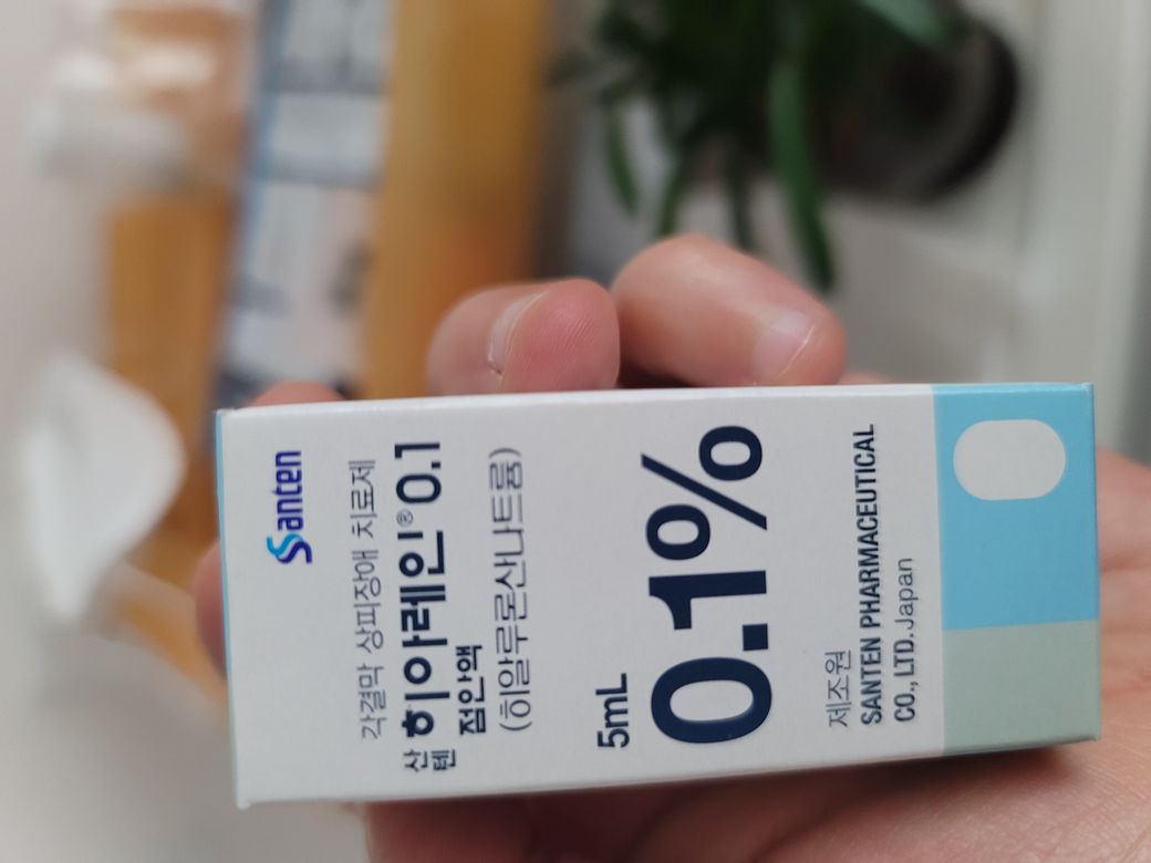 눈에 이물질이 들어가거나 휘발성 물체에 접촉된 경우 최우선적으로 안구 세척이 필요합니다. 올려주신 히알루론산 점안액으로도 세척이 가능하며 한번에 2-3방울씩 점안하여 눈을 깜박거리면서 세척을 우선 해보시기 바랍니다.