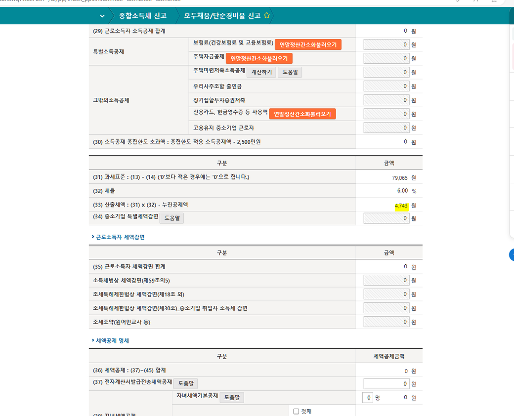 연말정산은 이미근로소득자라 받은상태이고 사업소득세만계산하면