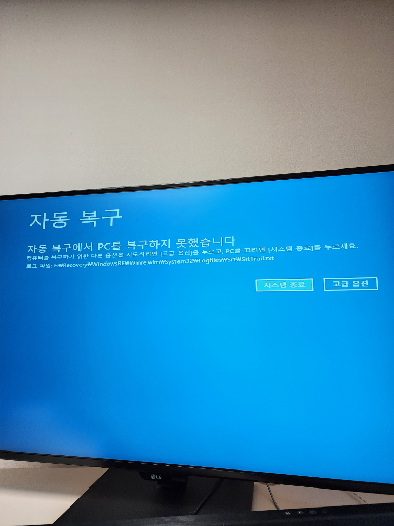 이사하고 컴퓨터 설치 후 부팅하니 자꾸 이런 메세지가 뜨네요..ㅜㅜ 해결 방법 없을까요? 이사전까지 잘됐는데 갑자기 이러니 난감하네요..