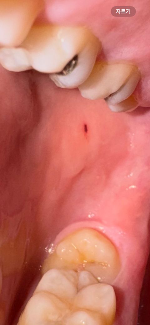 구강 내 점막은 조직이 연약하기 때문에 쉽게 다치고 상처가 생기는 등 소견이 발생할 수 있습니다. 그렇더라도 금방 회복이 되는 경과를 보이기도 합니다. 각설하고 사진을 통해서 보았을 때에는 큰 문제가 있거나 해 보이지는 않습니다. 경과를 지켜보셔도 무방할 것으로 사료됩니다.