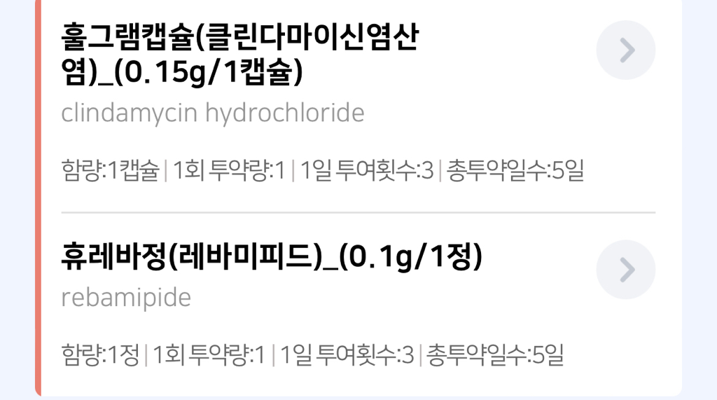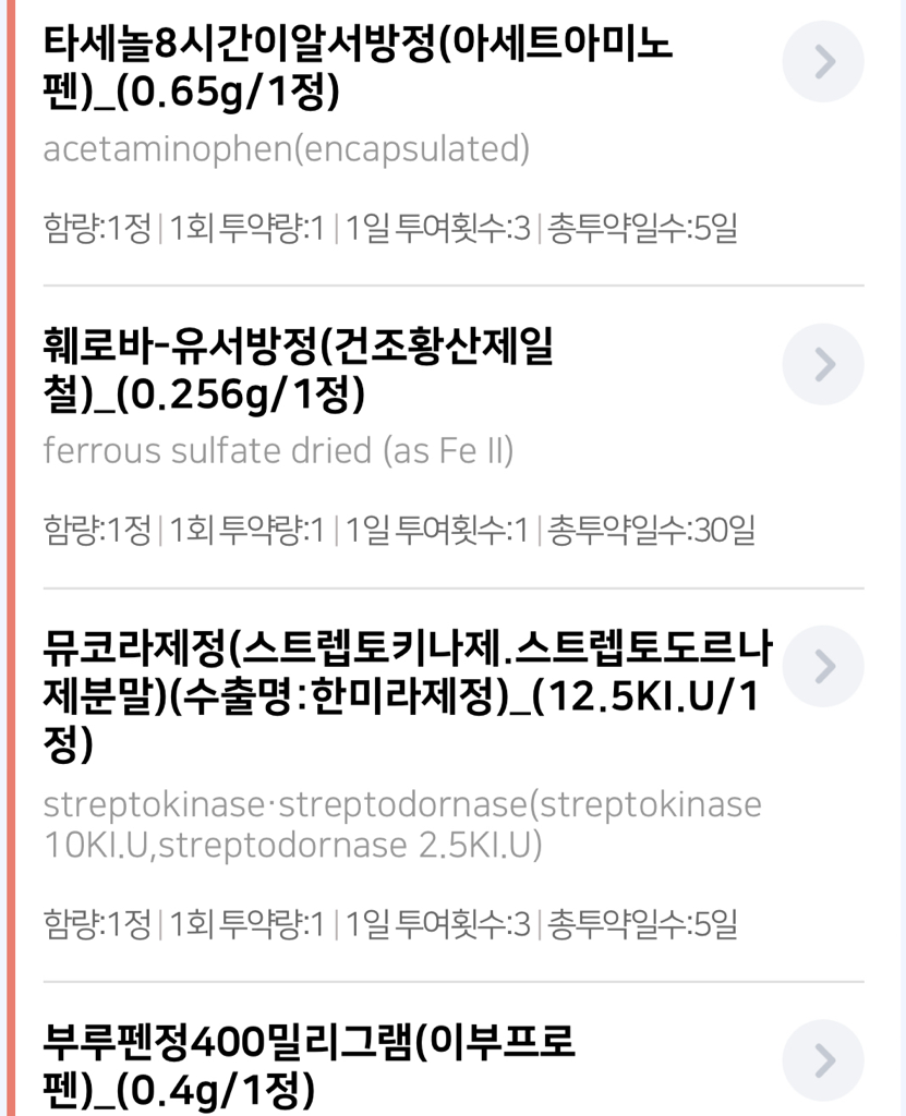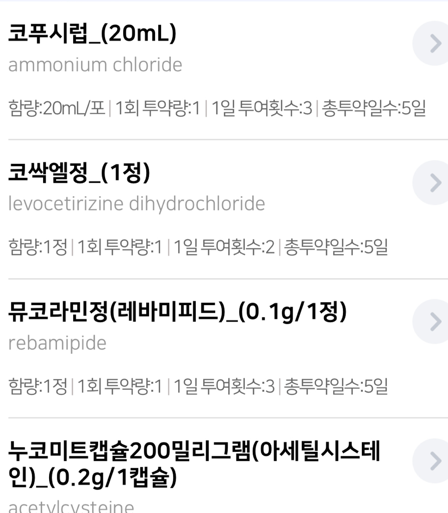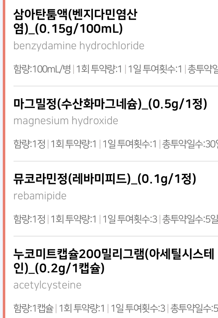 현재 복용하는 의약품들에는 스테로이드가 없지만