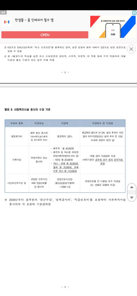 별표8 시설종사자의 수당기준에는