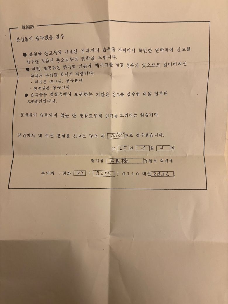 경찰 접수증이고 가입하신 여행자 보험에서 분실문 보험이 그 보장 내용으로 되어있는지 확인 후 (첨부해주신 보장내역은 글씨가 작아 확인이 어렵습니다. 대부분 가능한 것으로 보입니다. ) 해당 접수증을 기반으로 보험사에 사고 신고를 하시는 것을 고려해보시기 바랍니다.