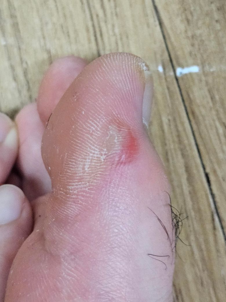 사진처럼 런닝을 하다가 발에 물집이 잡혔는데요 보통 물집이 하얀색이었다가 없어지는데 갑자기 이번엔 빨갛게? 변했네요 나아가는 정상적인 과정인 건가요?