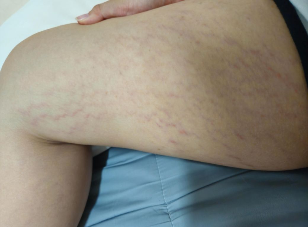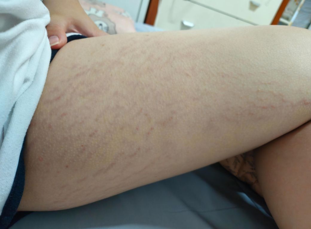 제가 허벅지 쪽에 튼살이 너무 많아서 고민이예요 나이가 중3인데 허벅지에 튼살이 더 늘어가고 있어서 일리윤로션(튼살로션)을 발랐는데 더 빨개지고 있는것 같고 더 많이 생기는것 같아서 지금은 안 바른 꽤 됬어요 제가 더위를 많이 타고 땀띠가 잘 생겨서 짧은 반바지을 즐겨 입는편 인데 튼살이 보이면 너무 좀 그럴까봐..ㅠ 짧은것 보단 그냥 반바지 입고 있고 그리고 금속 알러지는 알고 있었는데 밴드 알러지는 처음 들어서 그것 때문에 접촉성 피부염도 있고 갤럭시 워치도 옛날에는 찼었는데 지금은 못 찰 정도로 알러지가 나고 머리에는 지루성 두피염도 있고 제가 피부가 되게 약한가봐요..ㅠ 튼살은 진짜 어쩔수 없는 걸까요???ㅠㅜㅠ 사진상으로는 연해보이는데 실제로 보면 빨갛고 요즘엔 가렵기도 하고 그리고 저녁만 되면 온 몸 피부가 가려울 때도 있고 몸 안이 가려우면서 답답하고 벌레가 기어다니는듯이 그렇고 가끔씩은 앞갈비뼈와 뒷갈비뼈가 찌릿하면서 통증이 있어요 그리고 집먼지진드기DF 알러지도 있고 고양이 알러지도 있어요 어떻게 안될까요??